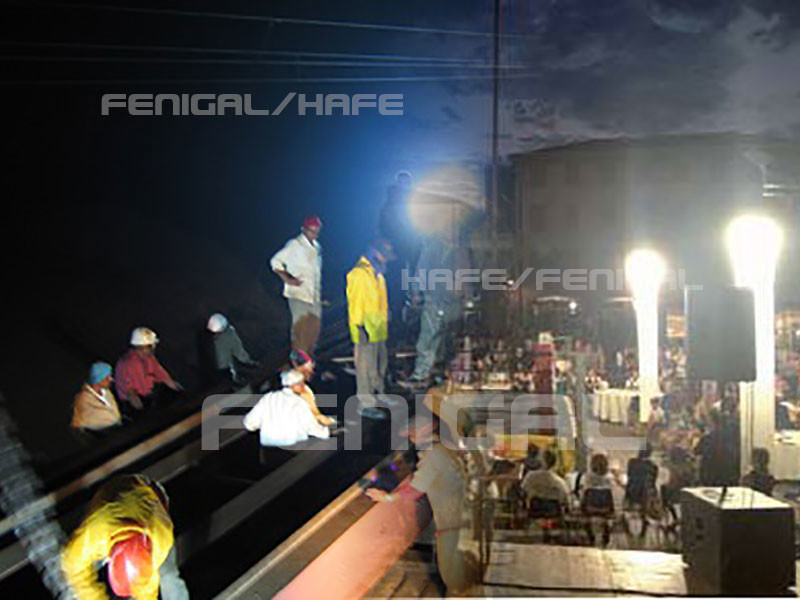 시스템은 1.2KVA, 2대 송풍기, 400W 메탈 할라이드 램프의 붙박이 제네트로 구성됩니다. 처음으로 사용자는 1 층으로부터 4.5 미터의 높이에 직물을 과장하기 위해 genset과 그리고 나서 송풍기를 켜야 합니다. 더욱 우리는 10,000 평방미터까지 면적을 밝히는 램프를 켭니다.