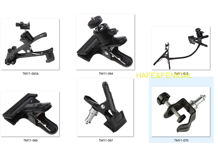 Key Parameters: Weight profiles range from 0.08kg (compact clips) to 0.44kg (heavy-duty clamps) (optimizing portability/stability); specialized features (swivel joints, ball heads, hot shoe receivers, spring-loaded mechanisms) add functional flexibility.
