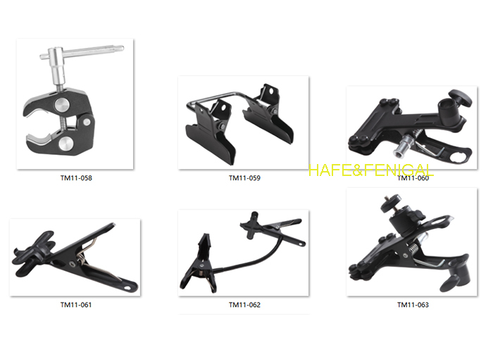 | TM11-064 | Small Clip with Ball Head | Compact clip; integrated ball head | Engineering plastic + metal (ball head components) | Black | Small accessory mounting (light cameras/LEDs); craft securing | Weight: 0.20; Small clip + ball head (space-saving adjustment) |